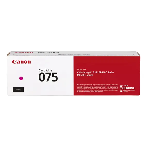 Canon 075. Rendimento da página de toner a cores: 1300 páginas, Cor(es) dos cartuchos de impressão: Magenta, Quantidade por conjunto: 1 unidade(s)Canon 075. Rendimento da página de toner a cores: 1300 páginas, Cor(es) dos cartuchos de impressão: Magenta, Quantidade por conjunto: 1 unidade(s)